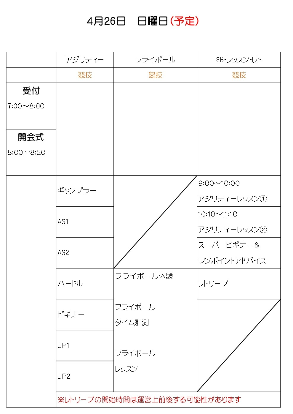 タイムテーブルはあくまで予定進行です。競技開始時間の前後はございます。ご了承ください。