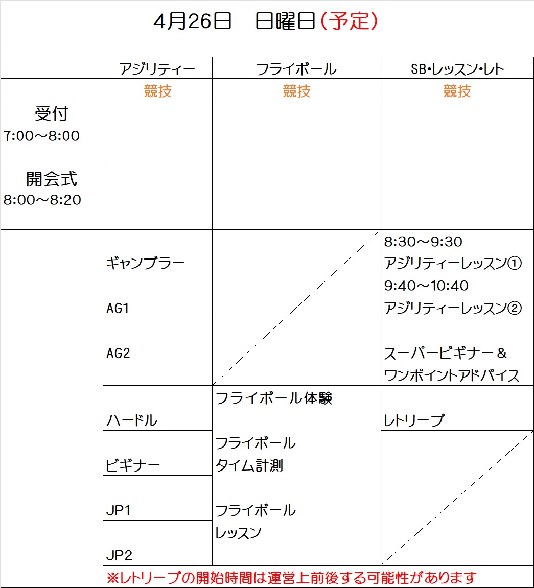タイムテーブルはあくまで予定進行です。競技開始時間の前後はございます。ご了承ください。